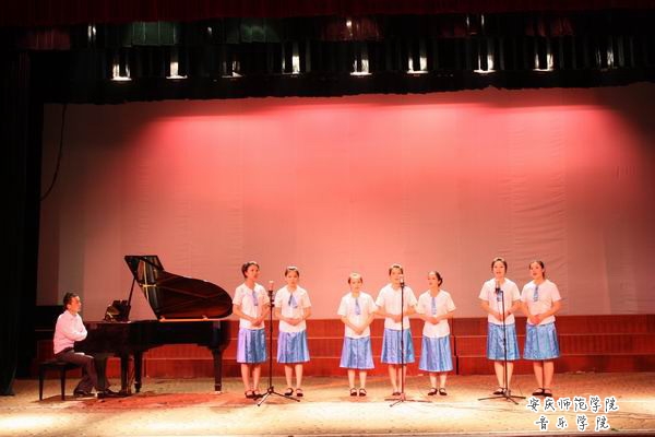 本场音乐会选取了中外具有代表性的歌曲共十五首,在08级全体女生大合唱《山寨虚无缥缈间》的歌声中拉开了序幕,在刘洋老师的钢琴伴奏和马良老师的指挥下,瞬时把现场观众带入了音乐的殿堂,接着,以四重唱、三重唱、男女生重唱、小合唱等多种形式,将真挚情感融合在了美妙的歌声里。演员们投入的演绎,动情的歌唱,丰富的舞台表演赢得了在场观众的阵阵掌声。男女声重唱《蓝色多瑙河》,主题鲜明,节奏明快,让全场师生领会了大自然的美丽春天的艺术画面,激发了大家对大自然的热爱之情,将晚会推向了高潮。最后,音乐会在08级全体学生的大合唱《小河淌水》、《茨冈》声中圆满落下了帷幕。持续一个半小时的表演,充满激情与活力,充分展现了我院学生对音乐作品内涵的深刻理解,对音乐语言所要表达内容的体会, 较好地把握和表现了歌曲的感情和风格,有效展示了我院专业教师的专业技能与学生专业学习的风采,也让现场观众对合唱与指挥艺术有了更深入的了解和体会。