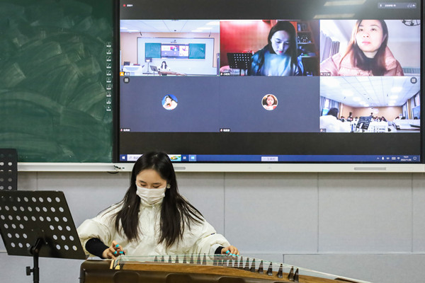 比赛全程采取“线上+线下”方式进行,考核围绕专业曲目展示和教学内容规划两方面开展,专业曲目展示的合理性、乐曲风格的正确把握、演奏者技术的呈现、讲解的连续流畅均为比赛考察重点,通过参赛者的技能展示、作品内涵阐释综合反映参赛者水准。学生们通过一曲曲高水准的古筝曲目演绎与教学讲解,锻炼表演实践能力以及语言表达能力。