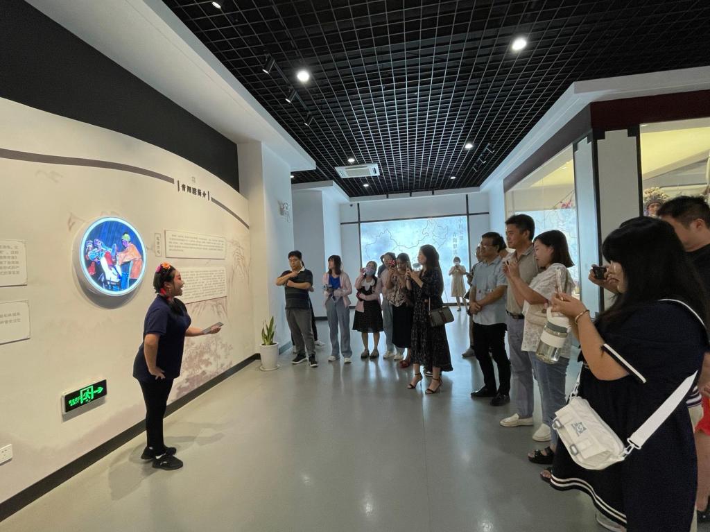 我院与黄梅剧艺术学院领导老师一行参观考察了青阳腔博物馆,对首批国家级非物质文化遗产青阳腔的源起、传承、传播、发展等进行深入调研。在青阳腔博物馆小剧场观看了九华云水公司先进党员、以青阳腔省级非遗传承人江进老师为主人翁创作拍摄的党教片《山花烂漫》。