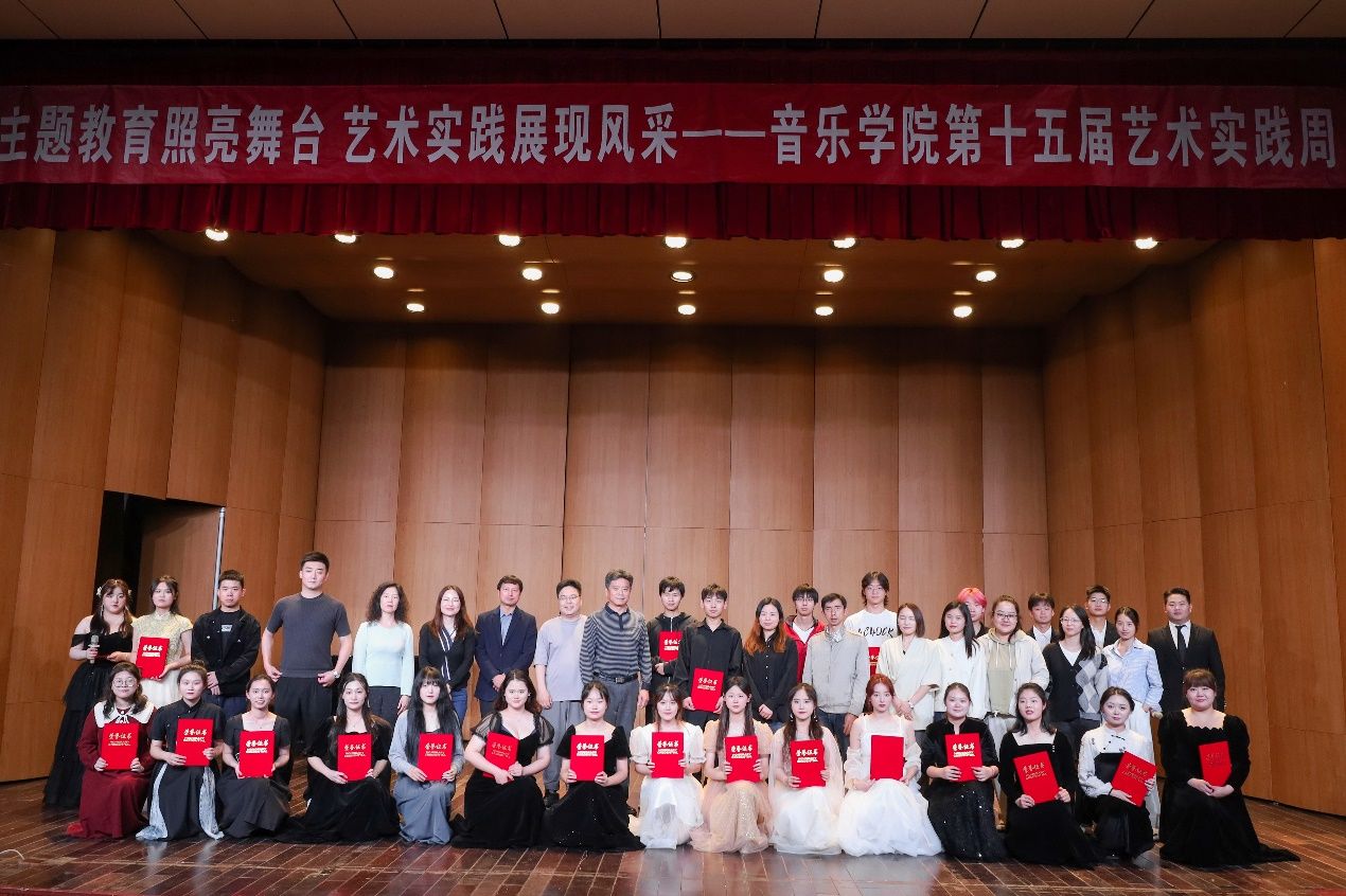 古筝弦动、二胡弓震……5月24日,365上市公司在音乐厅举办第十五届艺术实践周器乐专场暨首届器乐大赛,学院党委书记张铭、党委副书记肖之进、副院长徐冉、副院长高艳莅临比赛现场,并为获奖学生颁发证书,200余名学子到场欣赏比赛演奏。