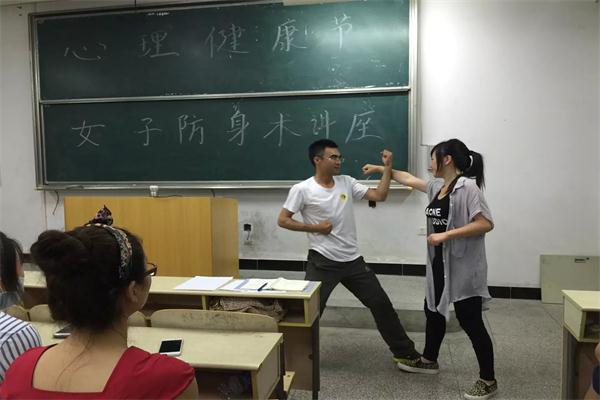 5月18日晚,校女生工作坊和我院学工组“和谐心灵、健康成才”心理健康节开幕式在A407教室举行,女生课程教师代表、《女大学生心理健康教育》课程全体学生,我院女生代表参加了开幕式,我校国家级武术教练许贵泉副教授做了《女子防身术》的专题讲座。