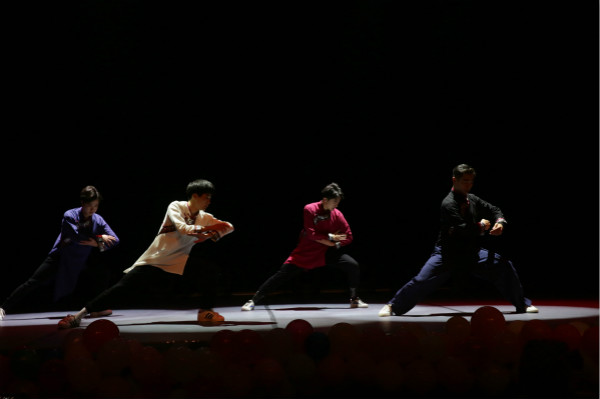 《安河桥》是一首流行民谣歌曲,我院张召兴老师根据音乐作品编创了该舞蹈,并亲自领舞,在舞蹈班三名男生的配合下,用高难度的动作配合沙哑的音乐声营造了一种怀念往昔的气氛。张召兴表示,舞蹈改编的灵感源于对过去的追忆,对自己学生时代学习舞蹈经历的怀念。