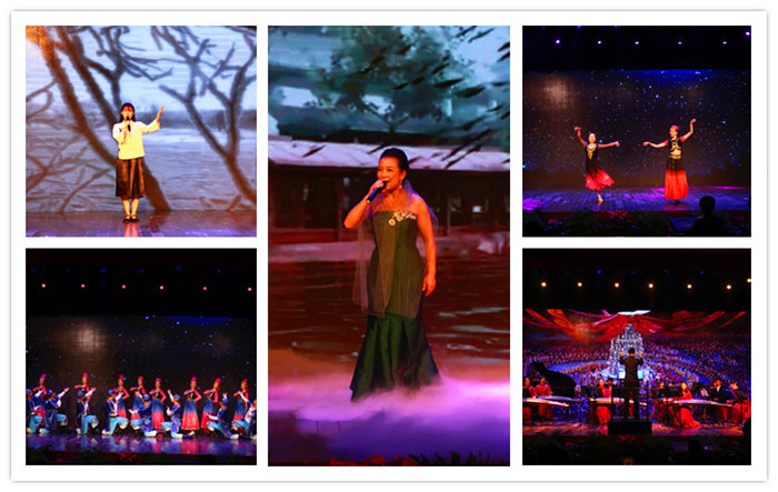 今日天高云淡,今夜《花好月圆》,最美好的祝福就包含在这一首首歌和一曲曲舞蹈之中……这一场场精彩绝伦的师生同台表演使得晚会现场气氛喜庆、热烈。