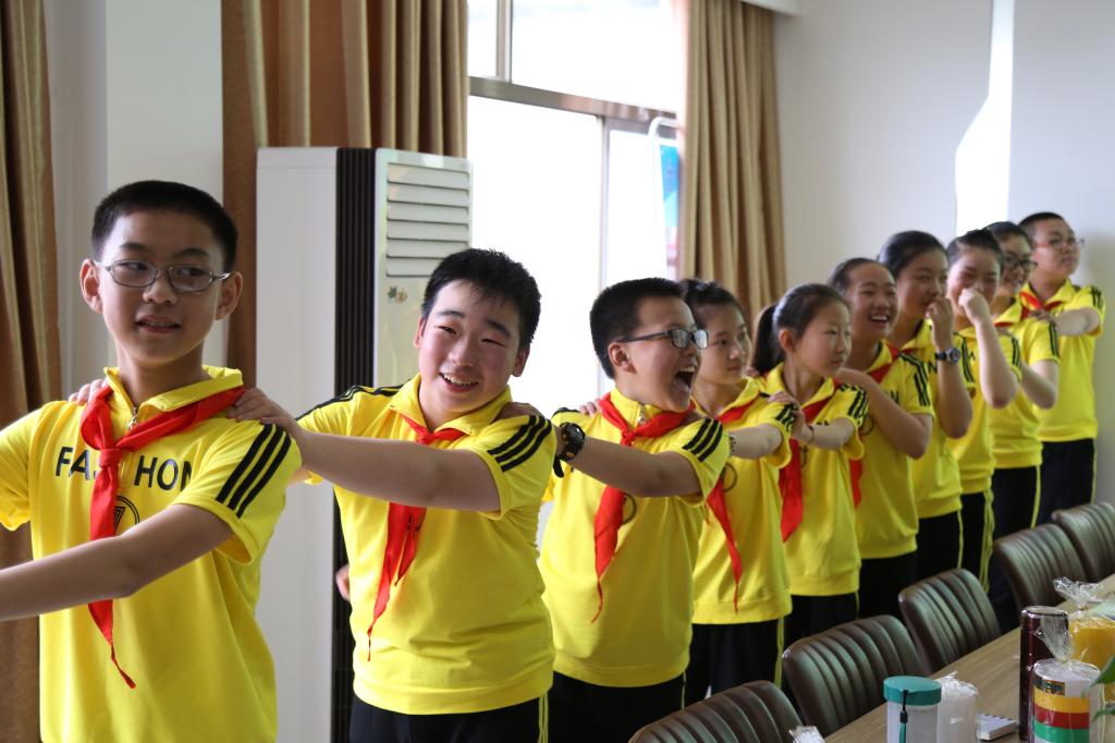 接下来便是心理小游戏的环节,在这之前孩子们都收到了敬敷女生工作坊同学们准备的小礼品。大家被随机分成两组,游戏开始。游戏“有错你就说”中,后面的同学用手搭前者的后肩,用数字代替方向,当领队喊出数字时,同学们需做出相应的动作,犯错的同学要主动举手示意,并大声对组员说出:“对不起,我错了!”游戏中欢笑连连。六年级学生谢涛高兴地说:“很喜欢哥哥姐姐们的表演,也谢谢他们给的小礼物,不知不觉就度过了一个愉快的下午。”