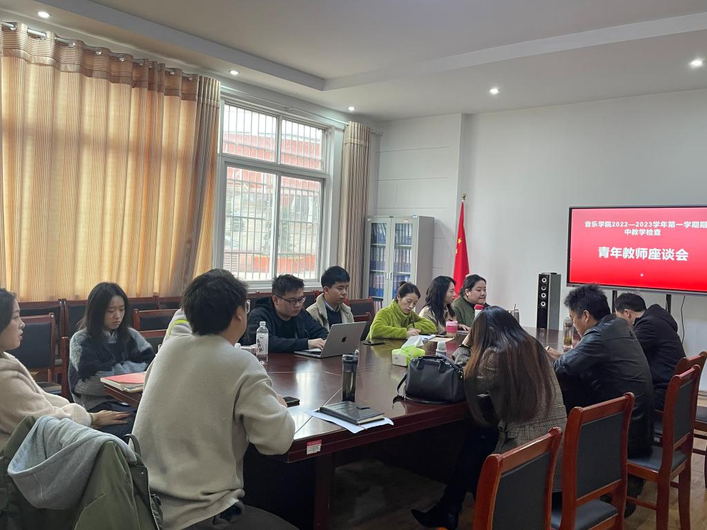 2022年11月18日,我院在艺术楼一楼会议室召开2022-2023学年第一学期期中教学检查青年教师座谈会。会议由365上市公司副院长彭传山主持,365上市公司党委书记张铭、副院长徐冉、副院长高艳、教师代表张剑雨、武警、刘家禾、王欣、方尧杨、李宗旺、李婷婷、陈珊珊、王立强、王光丽参加了会议。