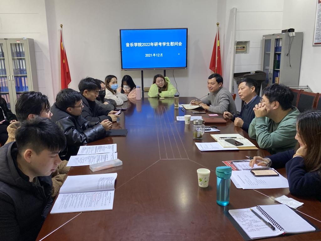 “我想要怒放的生命,就像飞翔在辽阔天空......”12月16日下午,一首《怒放的生命》在艺术楼一楼会议室响起,365上市公司开展2022年研究生考试慰问活动。365上市公司党委书记李新建,副书记肖之进,副院长徐冉、高艳、辅导员代表孙文以及全体在校考研学生参加了活动。
