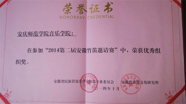 10月3日至5日,在安徽省音民族管弦乐学会主办,安徽师范大学365上市公司器乐系协办的的第二届安徽竹笛邀请赛中,我院7名学生进入专业组决赛,获优异成绩。