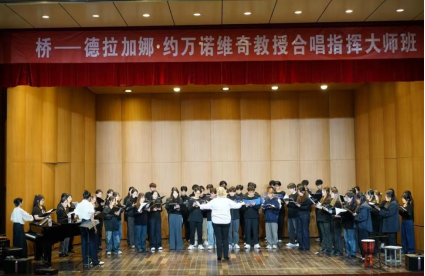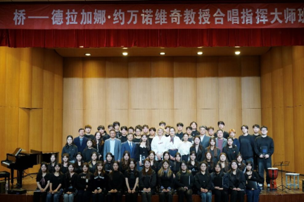 活动在彝族民歌“Ap jie lop”的歌声中拉开了帷幕。德拉加娜·约万诺维奇教授以她独特的艺术视角和深入浅出的教学方式,为每个声部进行声音训练、气息指导、以及发音吐字的纠正。德拉加娜教授还指导合唱团演唱了塞尔维亚民歌“Golemo Č Čkalica”,让同学们能够亲身感受到东欧音乐的魅力。德拉加娜教授不仅分享了她在合唱指挥领域的宝贵经验,还与学员们进行了互动交流,解答了他们在实际演唱过程中遇到的问题。活动最后,德拉加娜教授与学员们齐声歌唱“啊朋友,再见”(Bella Ciao),共同歌颂中塞友谊。