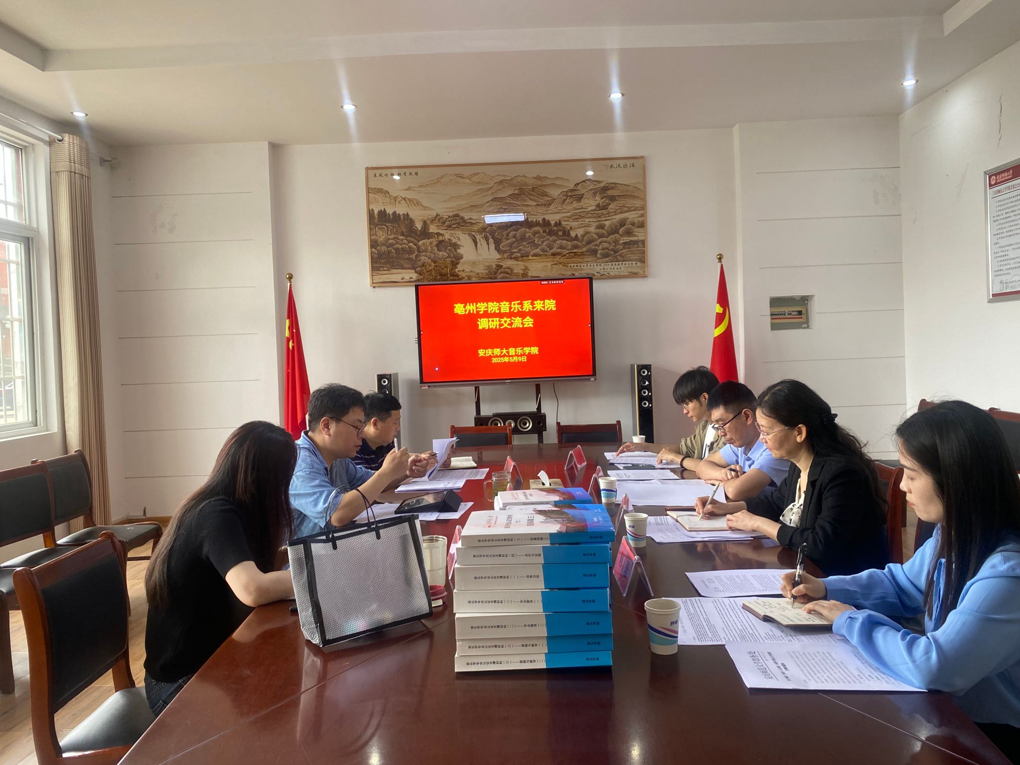 5月9日,亳州学院音乐系来我院调研交流。学院党委书记张铭、副院长徐冉、高艳、彭传山等热情接待了亳州学院音乐系副主任沈晓燕率领的专业教师团队调研组,并陪同参观了音乐厅、琴房、智慧教室等教学实训场地,双方就场馆功能设计、资源管理及实践教学应用进行了现场交流。