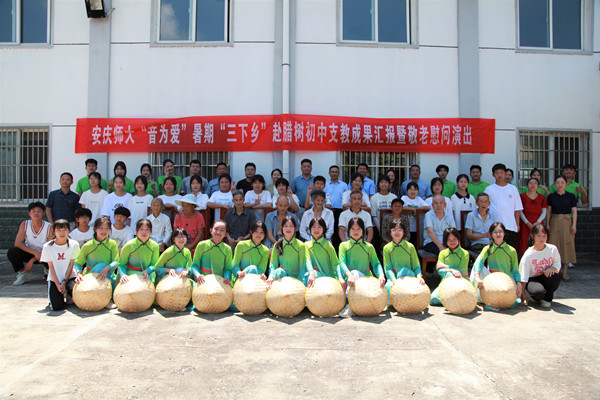 7月24日,我院党委书记张铭,校团委副书记赵丽丽,我院副院长徐冉、党委副书记肖之进、副院长高艳等一行7人,前往腊树初中看望慰问“音为爱”暑期“三下乡”社会实践团队、召开团队实践活动总结座谈会,并前往腊树镇敬老院观看团队支教成果汇演。参加活动的还有怀宁县教育局党委委员、副局长王根旺,腊树初中校长史志学等领导老师。