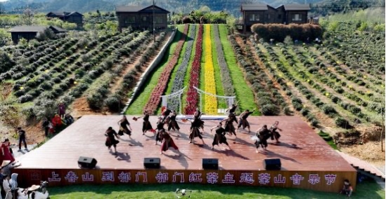 3月30日下午,2024祁门红茶主题茶山音乐节在安徽省黄山市祁门县祁门红茶集团平里生态茶园成功举办。我院教师和59名学生承担了此次音乐节的整场演出,包括乐队演奏、舞蹈、器乐演奏、歌伴舞的统筹、策划以及排练和演出。本次茶山音乐节以茶文化为主题,汇聚了众多茶艺专家,国际友人,共同感受茶山的美丽风光和红茶文化的魅力。