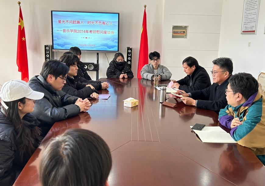 11月26日,我院在艺术楼一楼会议室举办2024年考研学生座谈会。院党委书记张铭、副院长徐冉、副书记肖之进、毕业班辅导员和在校考研学子参加会议。会议由张铭主持。