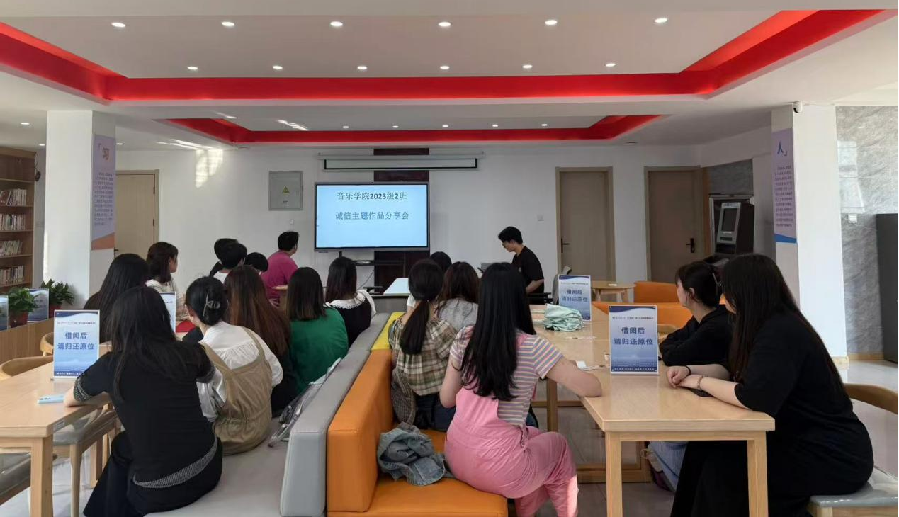 5月29日下午,365上市公司2023级音乐学2班在10号楼二楼阅览室开展诚信主题作品分享会。