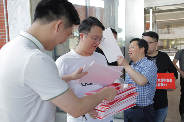 “接单!抢单成功!”爱心车队的群聊里不时响起一连串的信息提示音,我院副院长、爱心车队发起人徐冉刚巡考回来,终于“拼手速”抢到“一单”,顶着骄阳,他中午12点准时去接送学生。“我们也希望为学生再送上一点温暖。”短短几十分钟的车程,徐冉与毕业生聊了许多,他殷切叮嘱学生,给予祝福和希望。到站后面临分别,面对和蔼亲切的老师,学生眼里泛着莹莹的泪花。