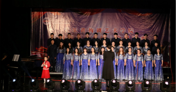 每个班级队伍都展示了自己独特的创意。音乐学专业2017级(2)班邀请一位小朋友上台清唱《我和我的祖国》引入团队合唱,清脆的童声打动了在场的每一个观众……