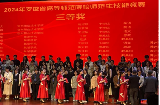 10月25日至27日,2024年安徽省高等院校师范生教学技能竞赛和安徽省本科师范院校教师智慧教学大赛在淮南师范学院举行,我院师生在激烈竞争中脱颖而出,荣获佳绩。