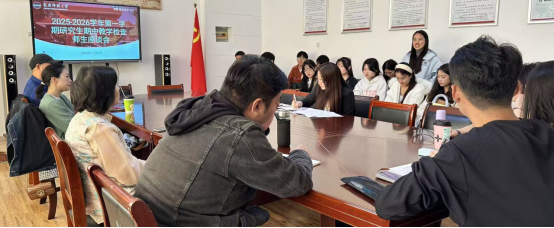 会上,高艳首先明确了此次期中教学检查的整体安排,强调将以“学院自查为主、学校抽查为辅”的方式,全面覆盖教学计划执行、课程教学质量、研究生学业进展等关键环节,确保教学工作规范有序推进。她着重强调了教学秩序的重要性,要求师生共同坚守教学规范,保障课堂教学与学术培养的高质量开展。